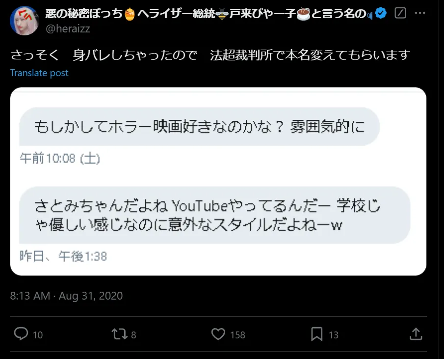 A. ヘライザー総統さんが戸来さとみさんであるという決定的な証拠はなく、公式からも肯定・否定の発言はありません。ネット上での憶測やファンの考察が多い状況です。